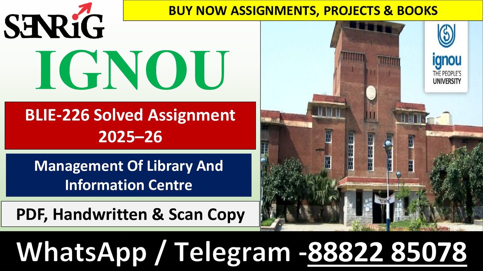 Searching for the latest IGNOU BLIE-226 Solved Assignment 2025–26 (English Medium)? If you need the Management Of Library And Information Centre solved assignment in Handwritten Hard Copy, Computer Typed PDF, or Handwritten Scan PDF for the July 2025 – January 2026 session, then you are at the perfect place!