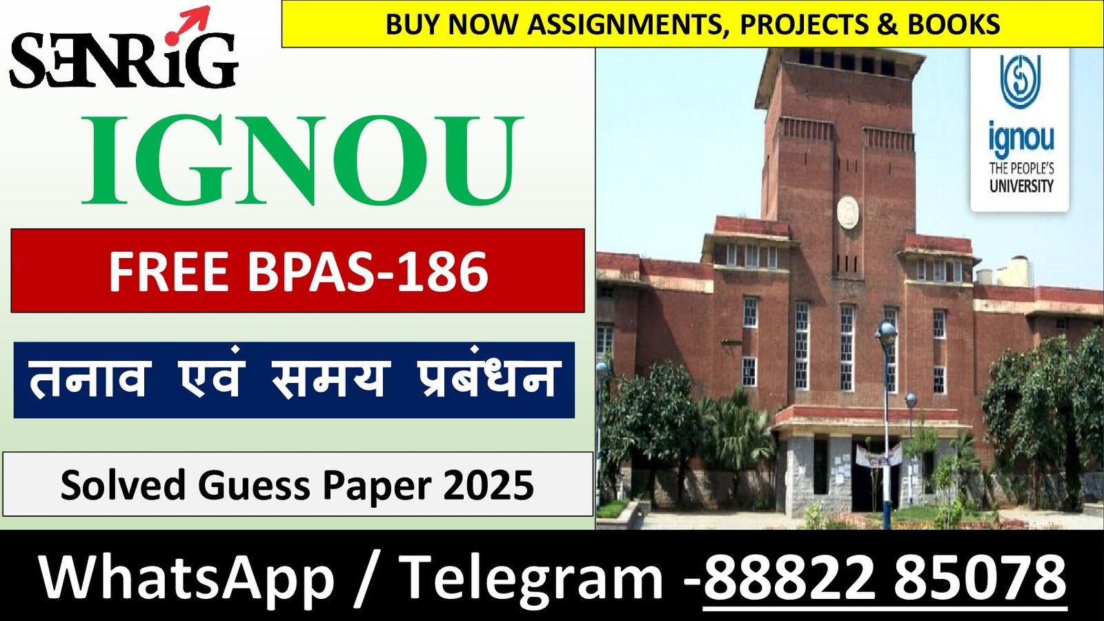 IGNOU FREE BPAS-186 तनाव एवं समय प्रबंधन Solved Guess Paper With Imp Questions 2025