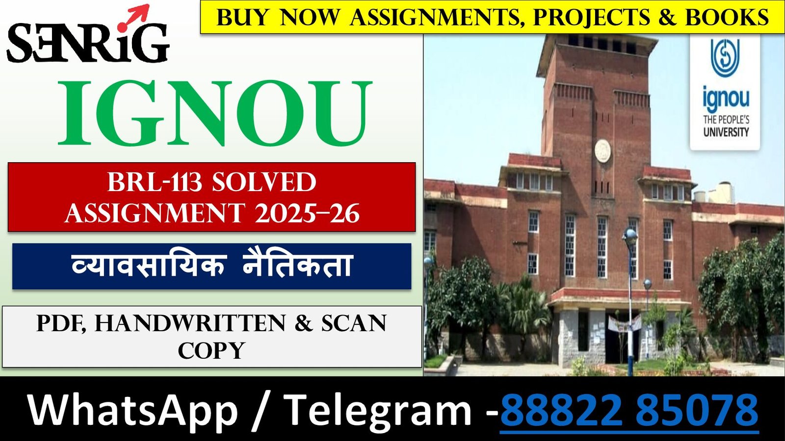 Searching for the latest IGNOU BRL-113 Solved Assignment 2025–26 (Hindi Medium)? If you need the व्यावसायिक नैतिकता solved assignment in Handwritten Hard Copy, Computer Typed PDF, or Handwritten Scan PDF for the July 2025 – January 2026 session, then you are at the perfect place!