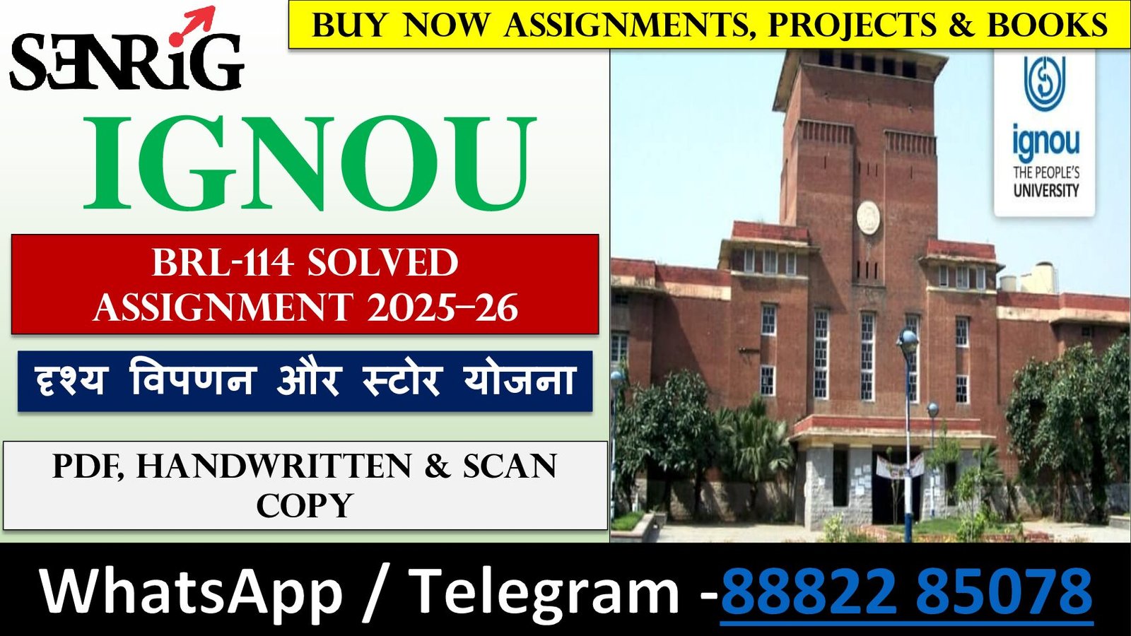 Searching for the latest IGNOU BRL-114 Solved Assignment 2025–26 (Hindi Medium)? If you need the दृश्य विपणन और स्टोर योजना solved assignment in Handwritten Hard Copy, Computer Typed PDF, or Handwritten Scan PDF for the July 2025 – January 2026 session, then you are at the perfect place!