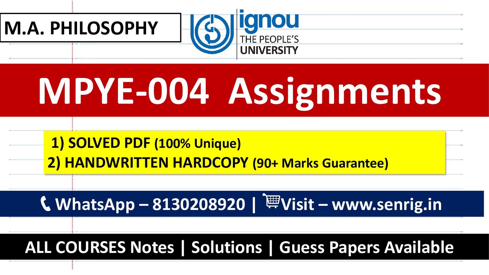 IGNOU MPYE-006 Assignments SOLVED PDF and HANDWRITTEN HARDCOPY 2024-25 : M.A. PHILOSOPHY