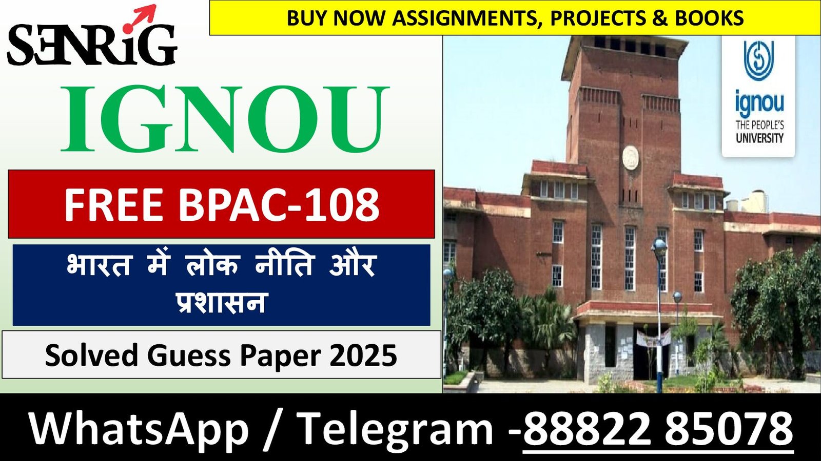 BPSC-113 Solved Assignment 2025–26 (Hindi Medium) Searching for the latest IGNOU BPSC-113 Solved Assignment 2025–26 (Hindi Medium)? If you need the MODERN POLITICAL PHILOSOPHY solved assignment in Handwritten Hard Copy, Computer Typed PDF, or Handwritten Scan PDF for the July 2025 – January 2026 session, then you are at the perfect place! We provide 100% … Read more