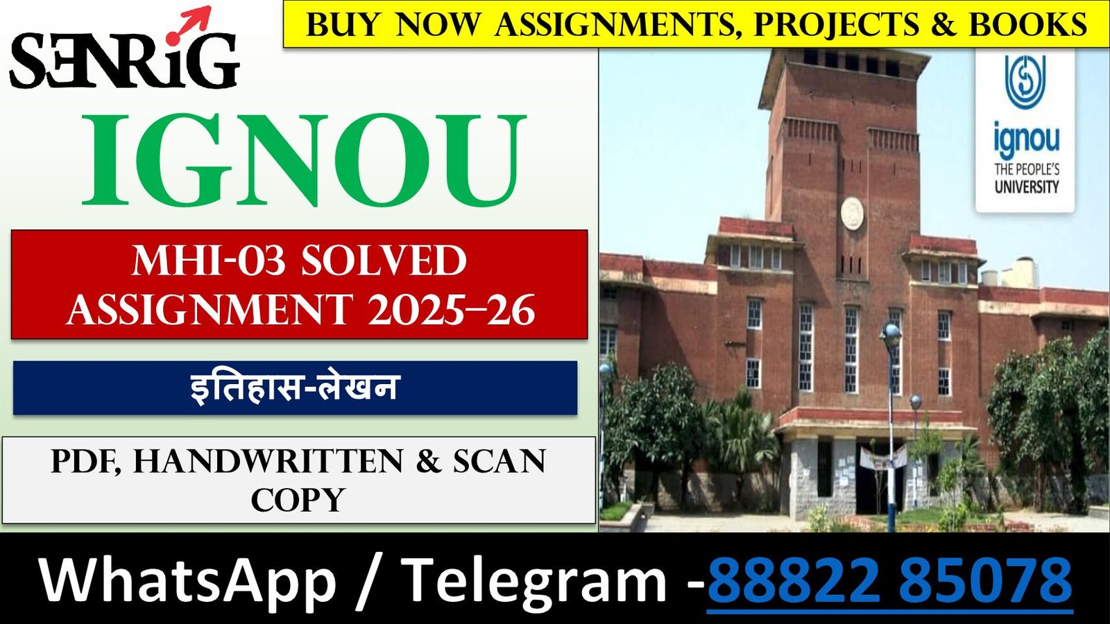 MHI-105 Solved Assignment 2025–26 (Hindi Medium) Searching for the latest IGNOU MHI-105 Solved Assignment 2025–26 (Hindi Medium)? If you need the History of Indian Economy-1 From Earliest Times to c. 1700 solved assignment in Handwritten Hard Copy, Computer Typed PDF, or Handwritten Scan PDF for the July 2025 – January 2026 session, then you are … Read more