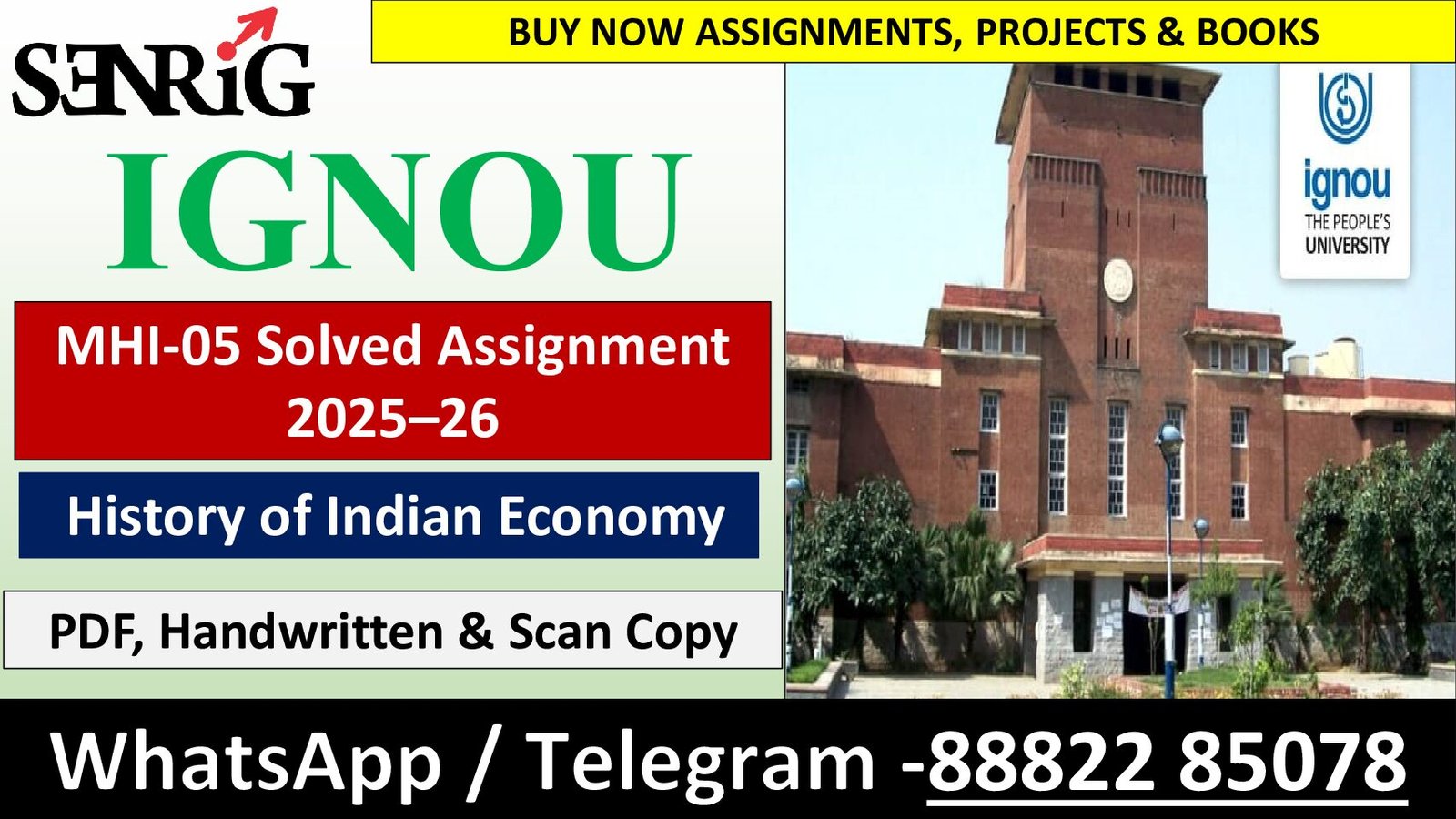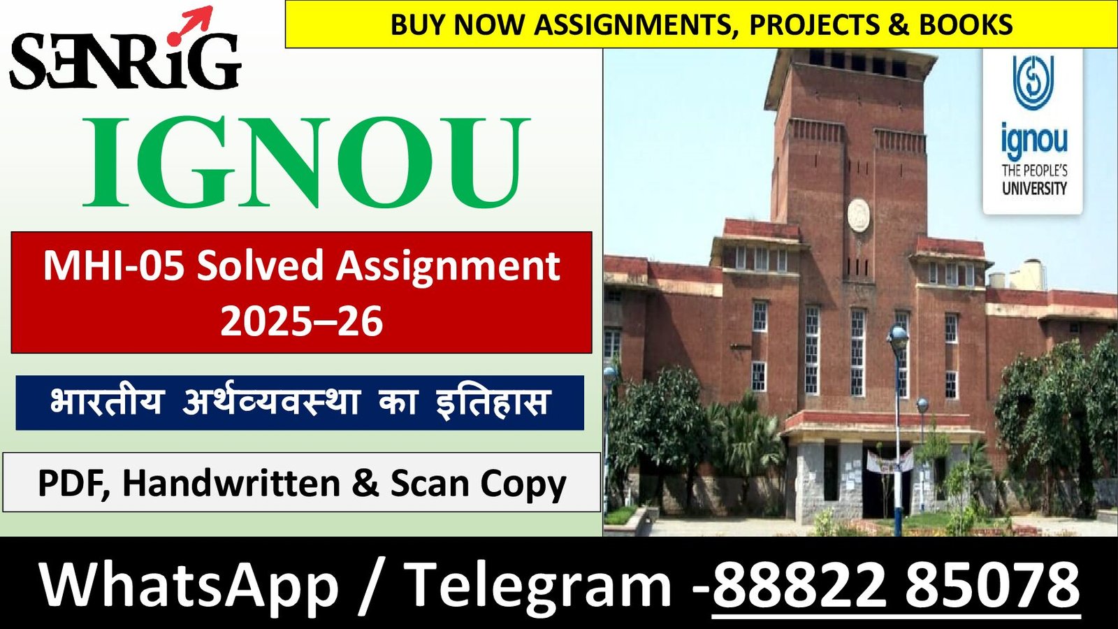 MHI-105 Solved Assignment 2025–26 (Hindi Medium): भारतीय अर्थव्यवस्था का इतिहास-1 प्रारंभ से ८. 1700 तक | PDF, Handwritten & Scan Copy