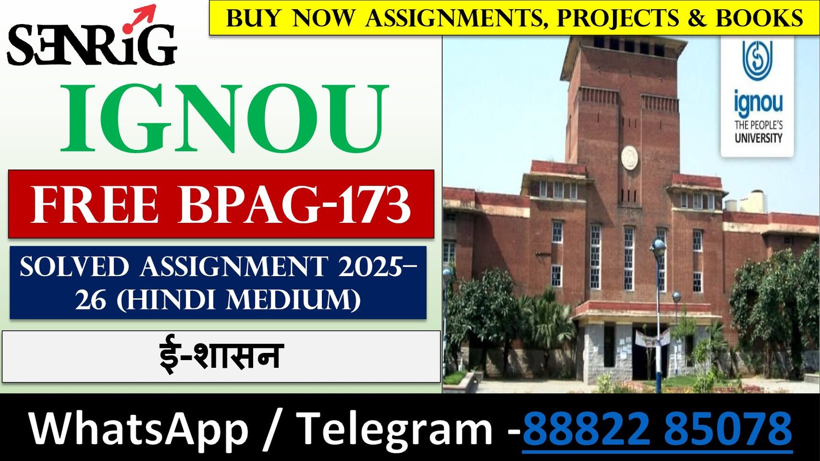 BPAG-174 Solved Assignment 2025–26 (Hindi Medium) Searching for the latest IGNOU BPAG-174 Solved Assignment 2025–26 (Hindi Medium)? If you need the सत्त विकास solved assignment in Handwritten Hard Copy, Computer Typed PDF, or Handwritten Scan PDF for the July 2025 – January 2026 session, then you are at the perfect place! We provide 100% accurate, … Read more