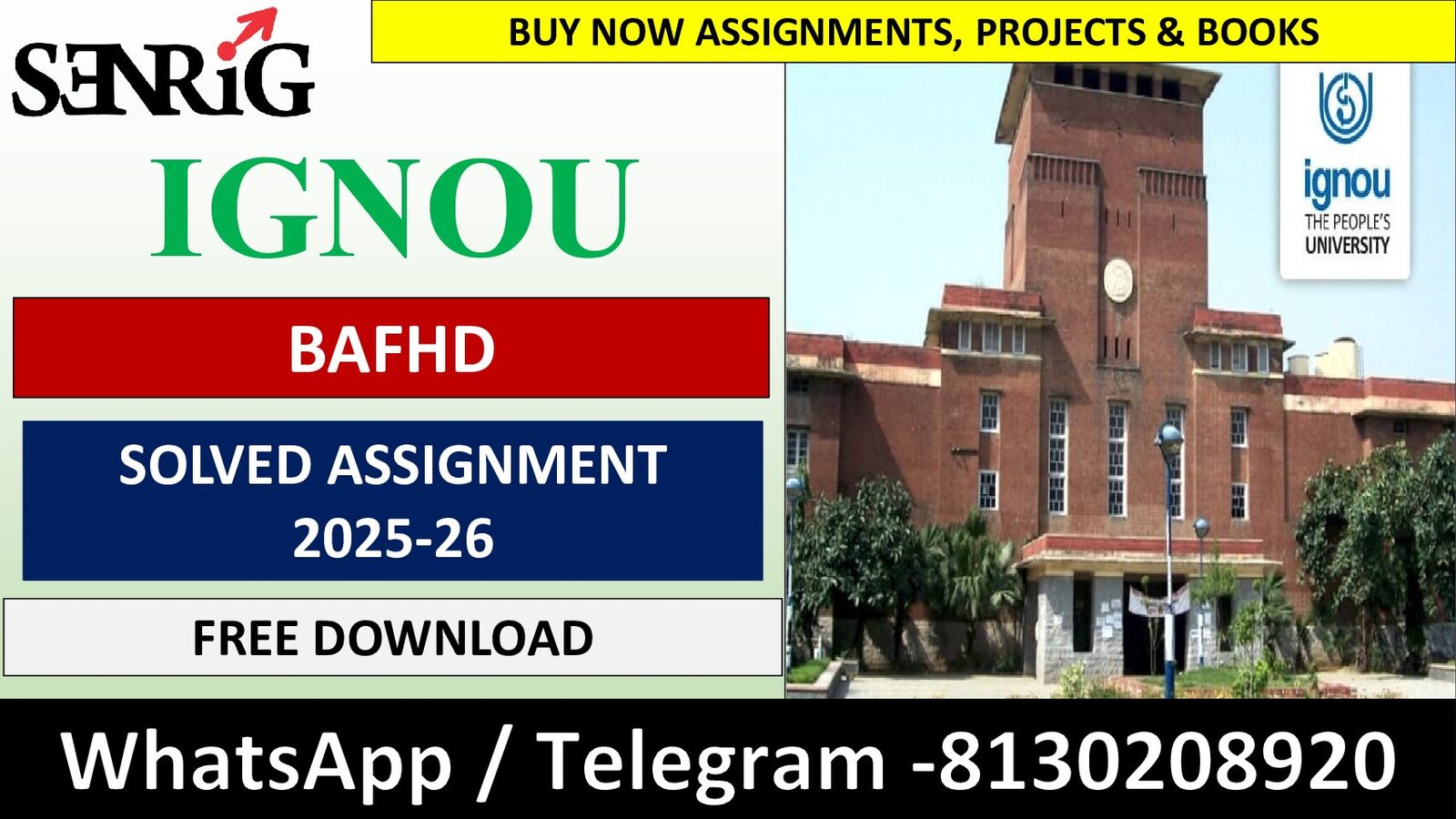 If you are an IGNOU BAFHD student and looking for IGNOU BAFHD Solved Assignments 2025–26 (Free Download), you’ve come to the right place. With over five years of direct experience with this course, we have deep knowledge of how to prepare accurate, high-quality, and score-boosting assignments based on the latest IGNOU guidelines.