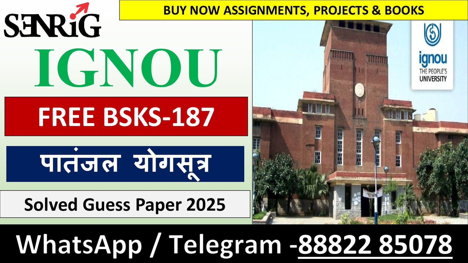 IGNOU FREE BSKS-187 पातंजल योगसूत्र Solved Guess Paper 2025