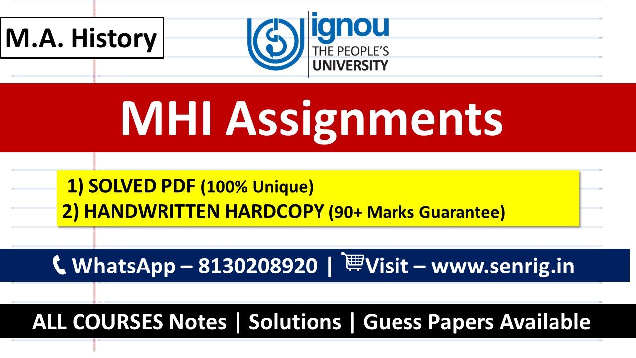 IGNOU MHI Assignments SOLVED PDF and HANDWRITTEN HARDCOPY 2024-25 : M.A. History