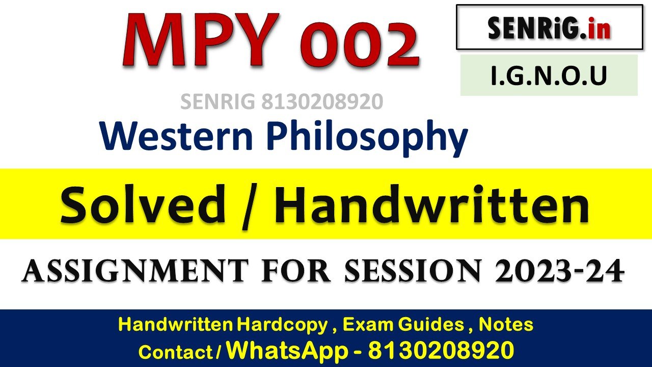 MPY 002 Solved Assignment 2023-24 : for college kids – MPY 002 Western Philosophy Solved Assignment 2023-24, Students are advised that after successfully downloading their Assignments, you’ll find each and every course assignments of your downloaded. Candidates got to create separate assignment for the IGNOU Master Course, so as that it’s easy for Evaluators to ascertain your assignments.
